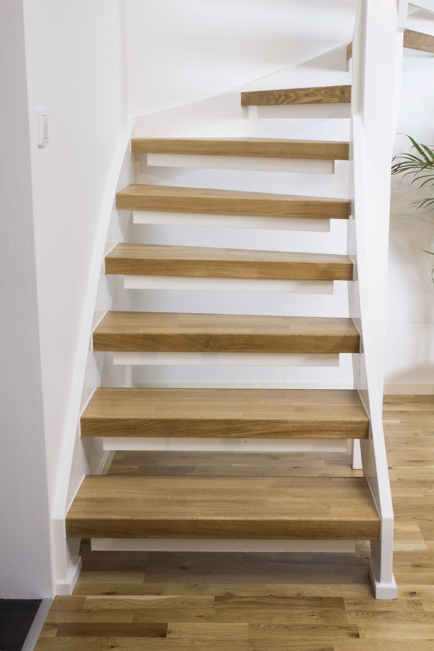 Frontplanke i 3-stav eik, med trappenese.